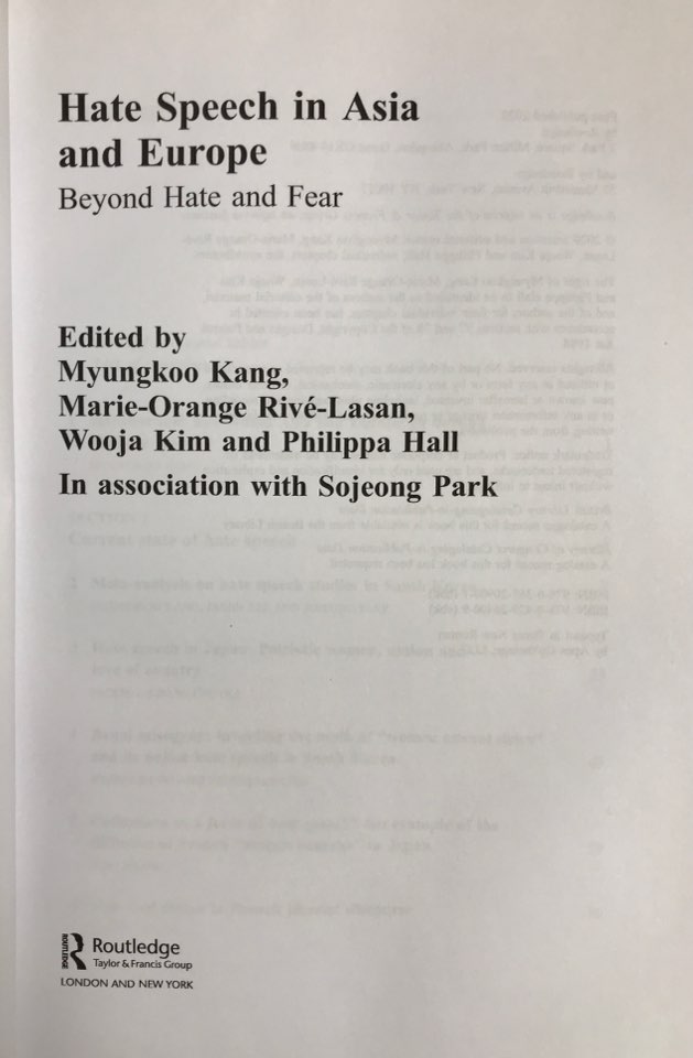 This volume was generated out of the international workshop titled “Beyond Hate & Fear: How Do Asia and Europe Deal with Hate Speech?” held at Kyoto in 2018, where I participated as a student member of the organizing committee and presented the paper as well.